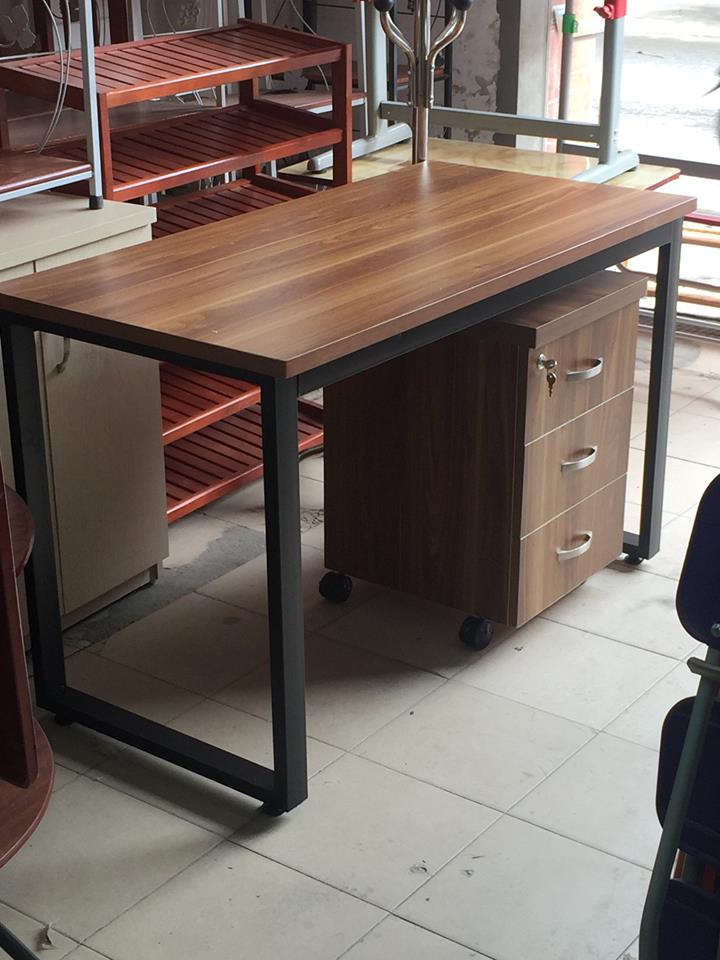 Bàn chân sắt kèm tủ phụ BCS-16 được làm bằng chất liệu gỗ công nghiệp cao cấp. Trên mặt bàn có phủ một lớp melamine chống trầy xước, ẩm mốc tốt. Giúp bàn luôn bóng đẹp theo thời gian. Bàn có kèm 1 tủ phụ thuận tiện khi làm việc
