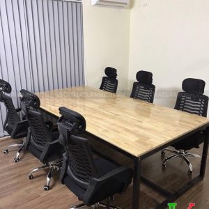 Bàn họp chân sắt mặt gỗ tự nhiên