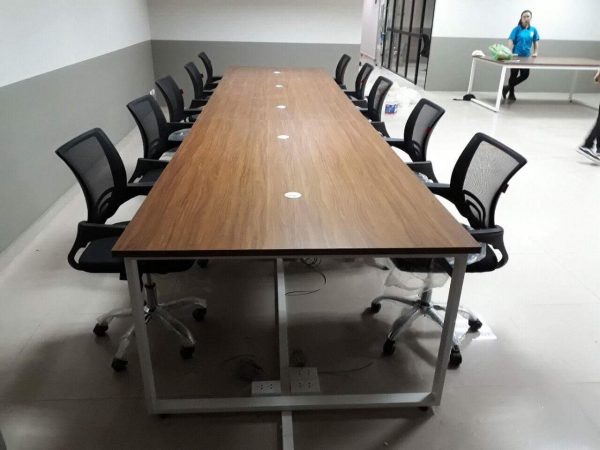 Bàn họp chân sắt gỗ công nghiệp 2m4 BH-11 được làm bằng chất liệu gỗ công nghiệp cao cấp. Trên mặt bàn có phủ một lớp melamine chống trầy xước, ẩm mốc tốt. Giúp bàn luôn bóng đẹp theo thời gian.