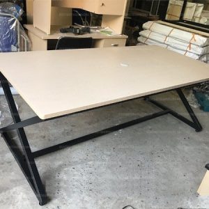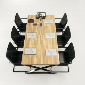 Bàn họp có dạng chân chữ X được làm bằng gỗ công nghiệp cao cấp có phủ một lớp Melamine giúp bàn luôn bóng đẹp, chống ẩm mốc. Khung sắt hộp 25 x 25 giúp bàn chắc chắn trên mọi mặt phẳng. Chiếc bàn này giúp các văn phòng trở nên chuyên nghiệp, sử dụng chuyên biệt, là nơi đưa ra các quyết định định hướng chiến lược cho doanh nghiệp.