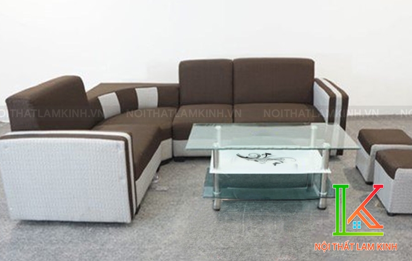 - Chất liệu sofa nỉ góc nâu là khung gỗ, nỉ